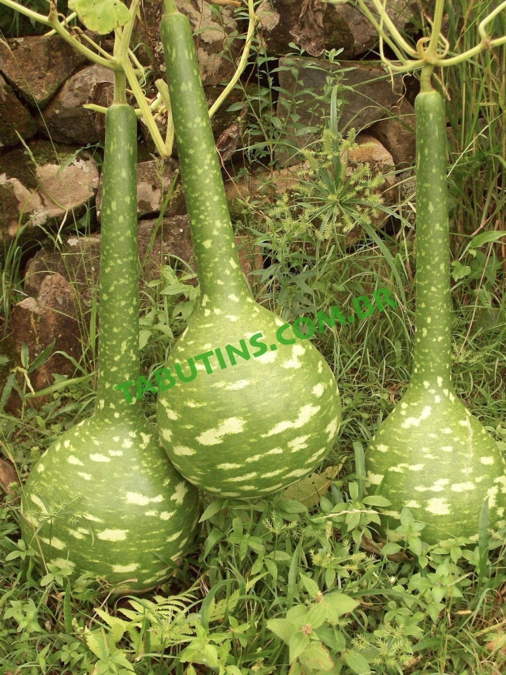 Lindíssimo porongo. Frutos grandes e curiosos. Quando rama no chão, forma uma "cabeça" e dobra o "pescoço", lembrando uma cobra pronta para o bote. Quando cresce tutorado, os frutos se erguem e, ao secar, tornam-se um enorme "chocalho".